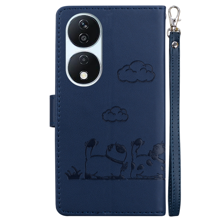Funda de Cuero Rfid para Honor X7B y Play 50 Plus con Diseño de Gatos (Azul)