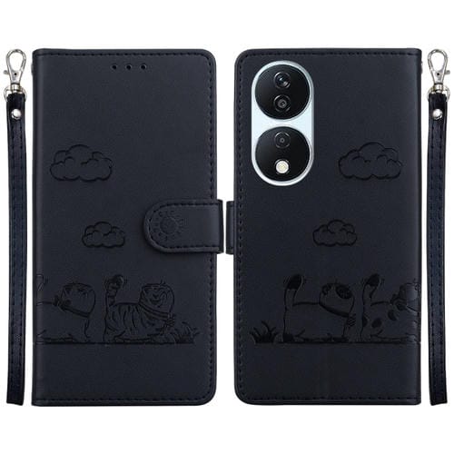 Funda de Cuero Rfid con Diseño de Gatos para Honor X7B y Play 50 Plus (Negra)