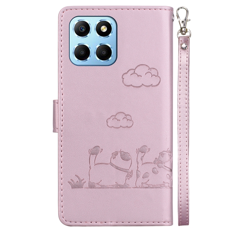 Funda de Cuero Rfid con Diseño de Gatos para Honor X8 5G (Oro Rosa)