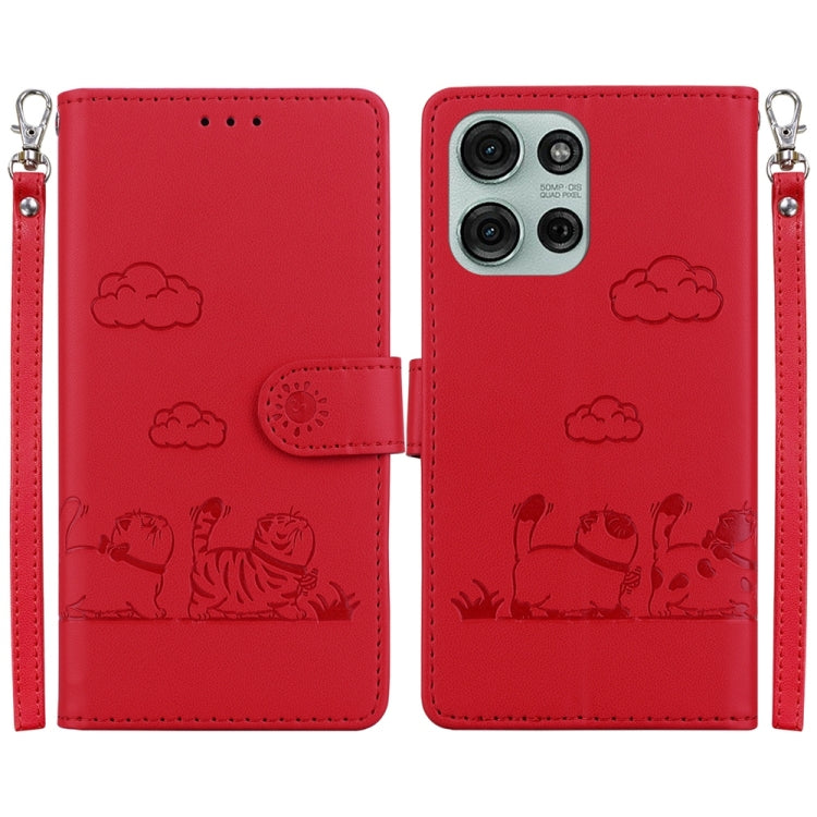 Funda de Cuero Rfid para Motorola Moto G75 5G con Diseño de Gatos (Rojo)
