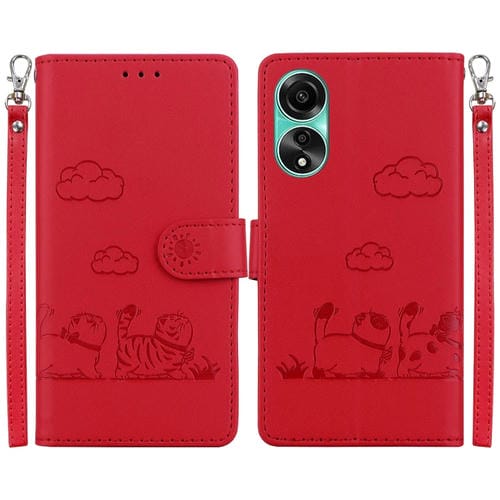 Funda de Cuero Rfid con Diseño de Gatos para Oppo A78 4G (Roja)