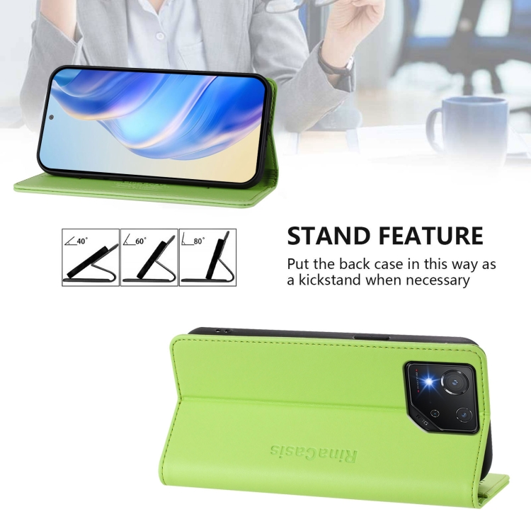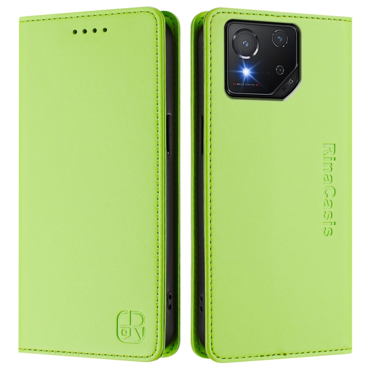 Funda de Cuero Rfid para Asus Rog Phone 8/8 Pro Rc01 con Doble Pliegue y Succión Magnética (Verde Hierba)