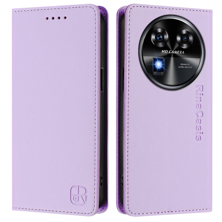 Funda de Cuero Rfid con Doble Pliegue y Succión Magnética para Oukitel C37 Rc01 (Morado Claro)
