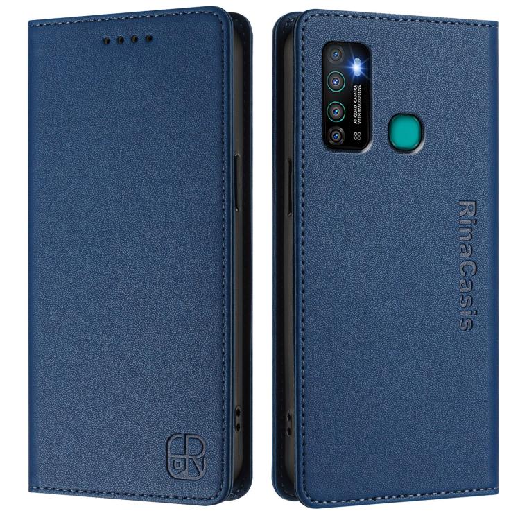 Funda de Cuero Rfid para Tecno Camon 15/15 Air Rc01 con Doble Pliegue y Succión Magnética (Azul Oscuro)