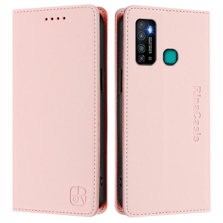 Funda de Cuero Rfid para Tecno Camon 15/15 Air Rc01 con Doble Pliegue y Succión Magnética (Rosa)