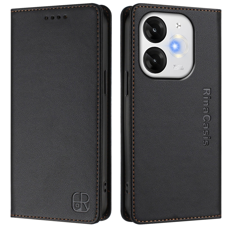Funda de Cuero Rfid para Teléfono Itel A80 4G Rc01 con Doble Pliegue y Succión Magnética (Negra)