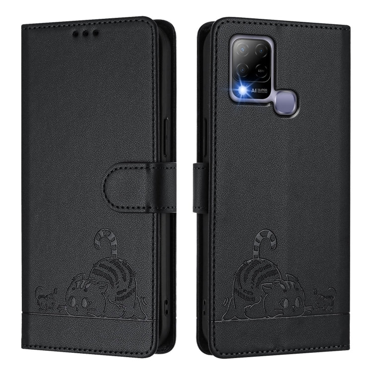 Funda de Cuero RFID para Infinix Hot 10T/10S con Estampado de Rata y Gato en Relieve y Cordón (Negro)
