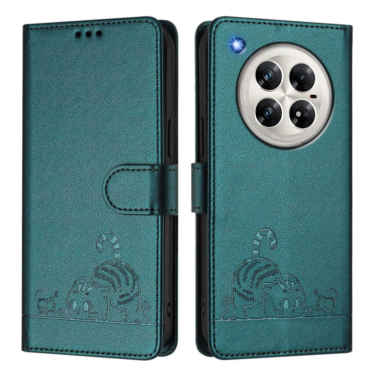 Funda de Cuero Rfid para Infinix Zero 40 4G/5G con Estampado de Rata y Gato y Cordón (Verde Pavo Real)