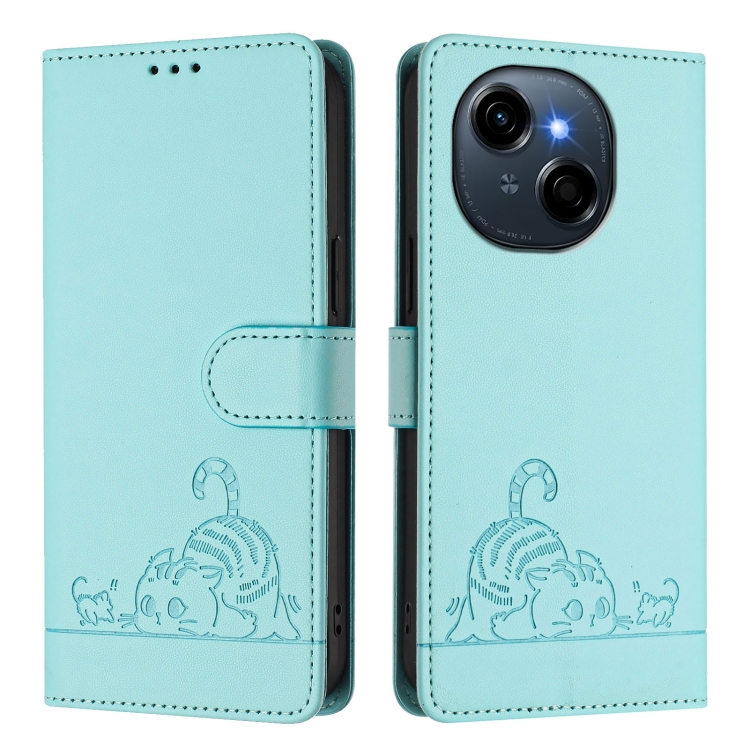 Funda Cuero Rfid Tecno Spark Go 1 Estampado Rata Gato con Cordón (Verde Menta)