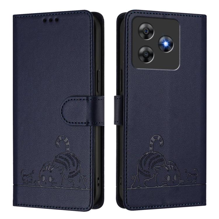 Funda de Cuero Rfid para BlackView Wave 8C con Estampado de Rata y Gato y Cordón (Azul)