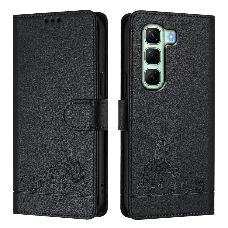 Funda Cuero Rfid Infinix Hot 50 5G con Cordón Estampado Rata y Gato (Negro)