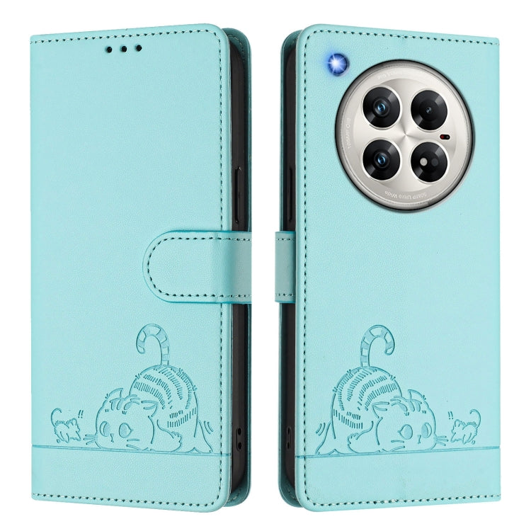 Funda de Cuero Rfid para Infinix Zero 40 4G/5G con Estampado de Rata y Gato y Cordón (Verde Menta)