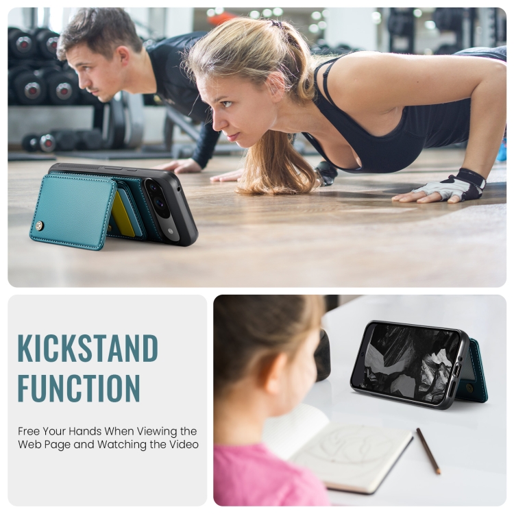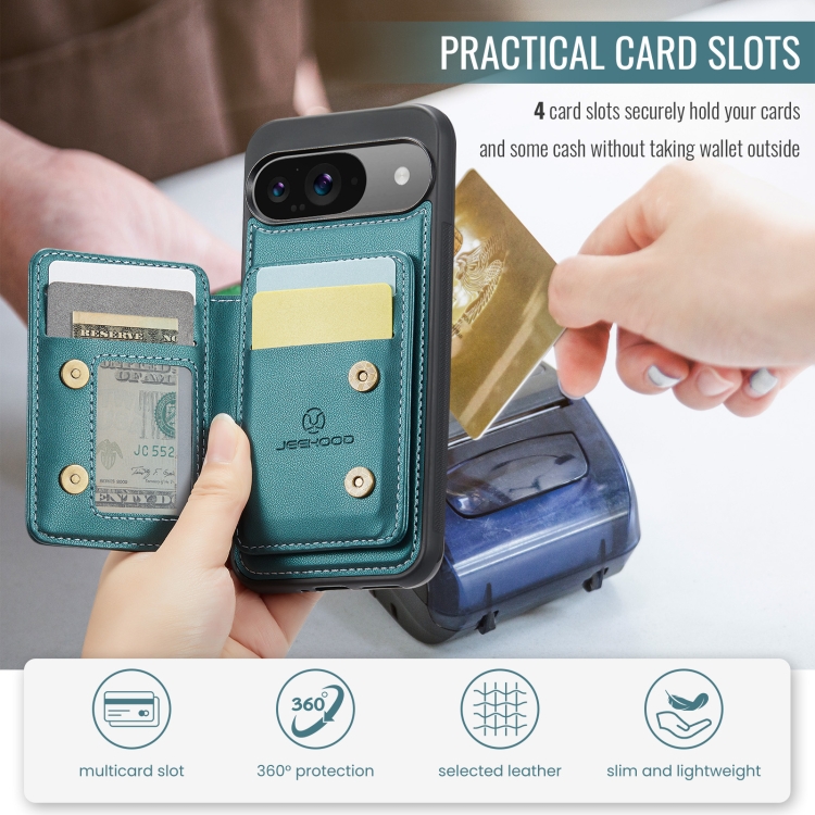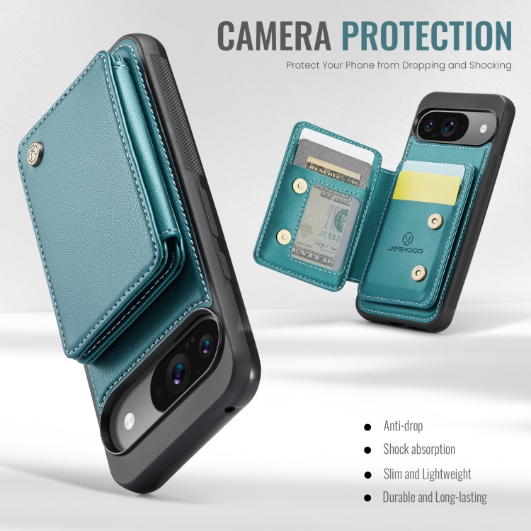 Funda de Cuero Rfid Magnética Jeehood J05 para Google Pixel 9 y 9 Pro (Azul y Verde)