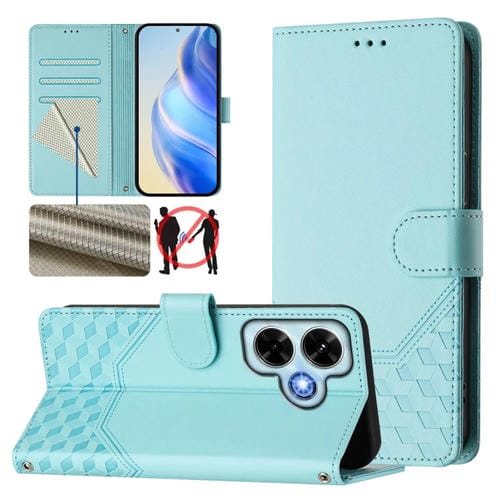 Funda de Cuero Rfid con Relieve de Panal Global para Redmi Note 13 4G (Verde Menta)