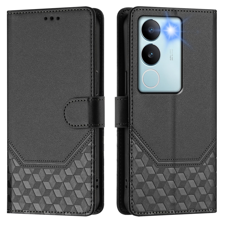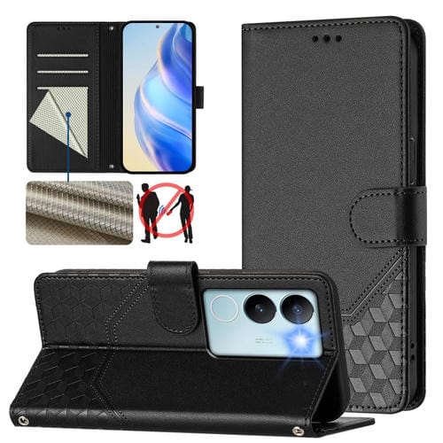 Funda de Cuero Rfid con Relieve de Panal Global para Vivo V29 5G/V29 Pro (Negra)