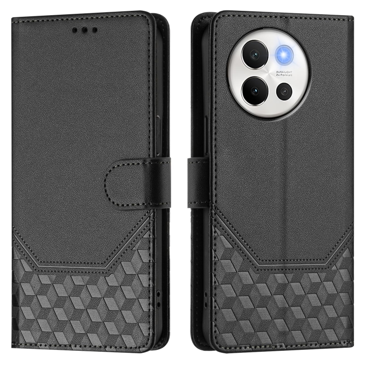 Funda de Cuero Rfid con Relieve de Panal Global para Vivo V40 Lite 5G/V30E 5G (Negra)