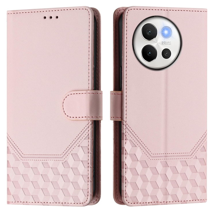 Funda de Cuero Rfid con Relieve de Panal Global para Vivo V40 Lite 5G/V30E 5G (Rosa)