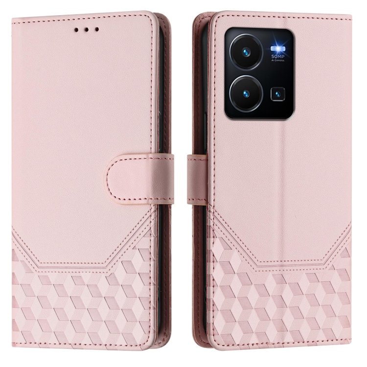 Funda de Cuero Rfid con Relieve de Panal Global para Vivo Y35 4G / Y22S 4G / Y22 4G (Rosa)