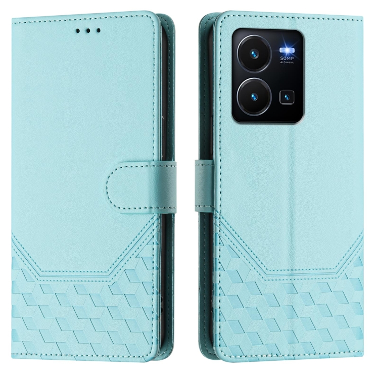 Funda de Cuero Rfid con Relieve de Panal Global para Vivo Y35 4G / Y22S 4G / Y22 4G (Verde Menta)