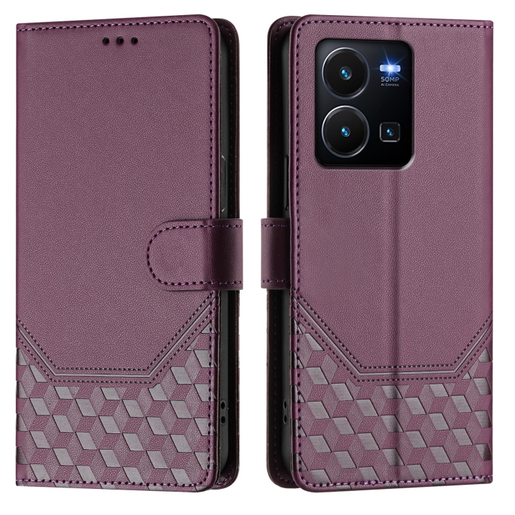 Funda de Cuero Rfid con Relieve de Panal Global para Vivo Y35 4G / Y22S 4G / Y22 4G (Violeta)