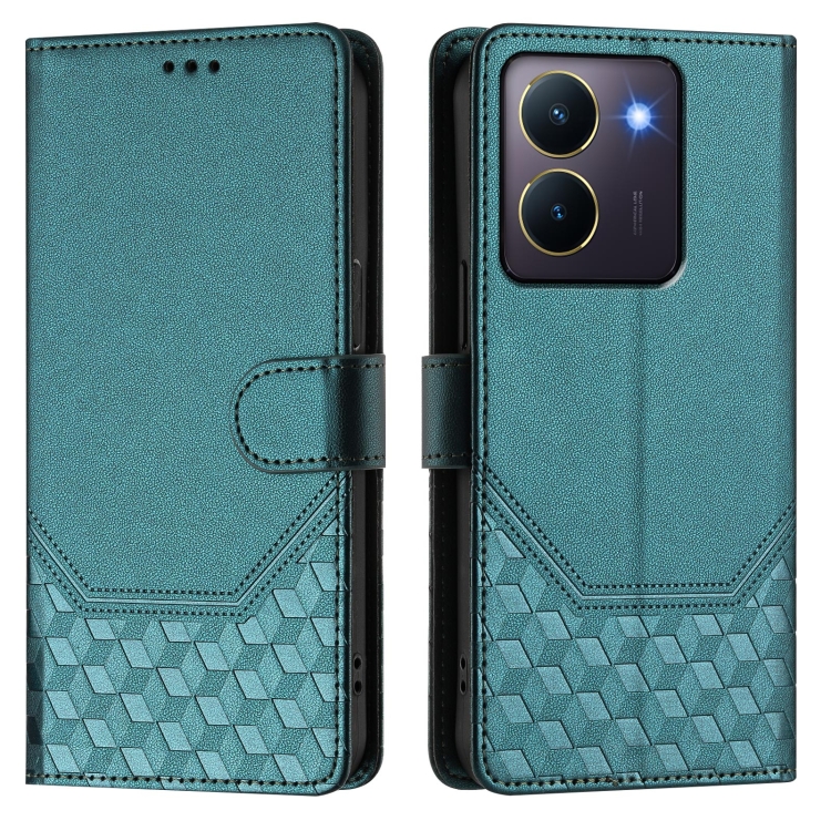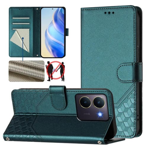 Funda de Cuero Rfid con Relieve de Panal Global para Vivo Y36 5G/4G/Y27S 4G (Verde Pavo Real)