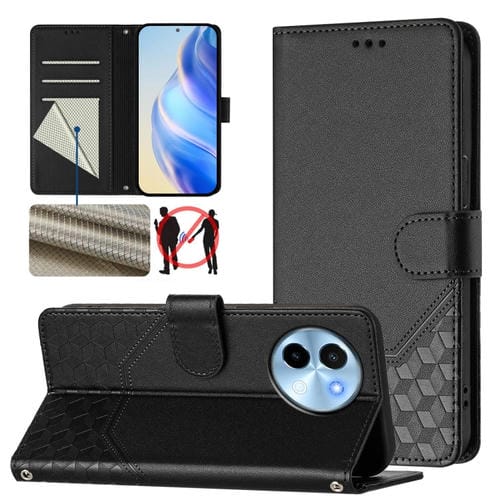 Funda de Cuero Rfid con Relieve de Panal Global para Vivo Y38 5G / Y200I / T3X (Negra)