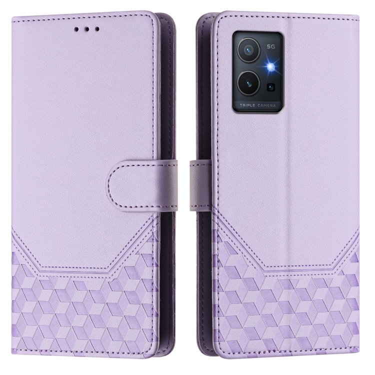 Funda de Cuero Rfid con Relieve de Panal Global para Vivo Y55S 2023/Y75 5G (Morado Claro)