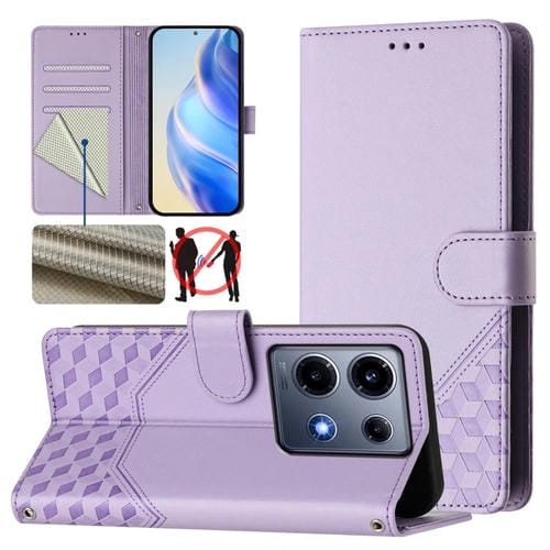 Funda de Cuero RFID con Relieve de Panal para Teléfono Infinix Note 30 Vip (Morado Claro)