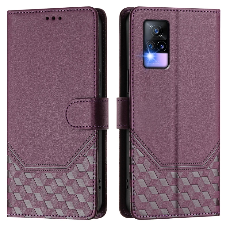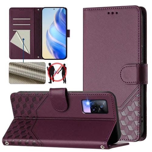 Funda de Cuero Rfid con Relieve de Panal para Vivo V20/Y73 2021 (Violeta)