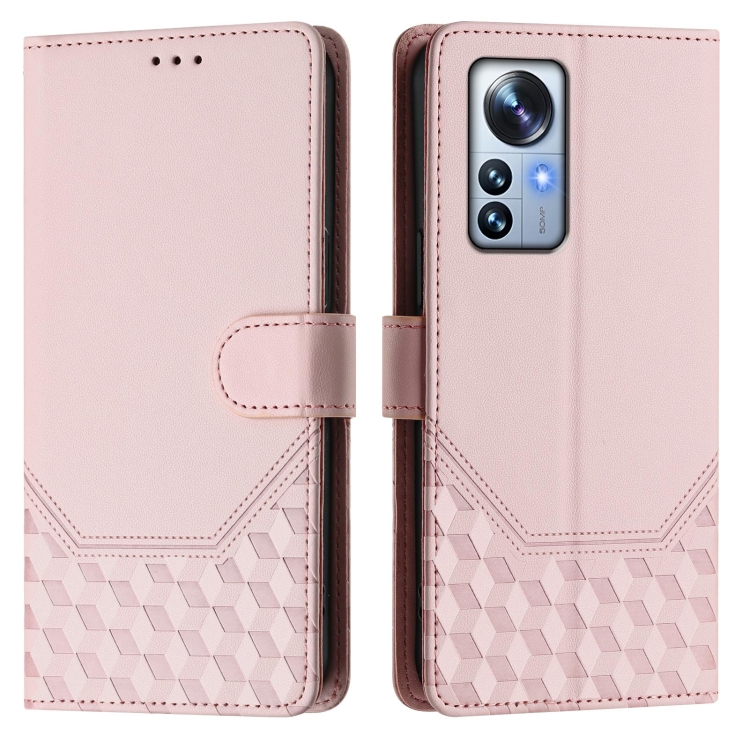 Funda de Cuero Rfid con Relieve de Panal para Xiaomi 12 Pro/12S Pro (Rosa)