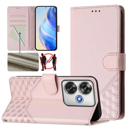Funda de Cuero Rfid con Relieve de Panal para Xiaomi Poco F6 5G (Rosa)