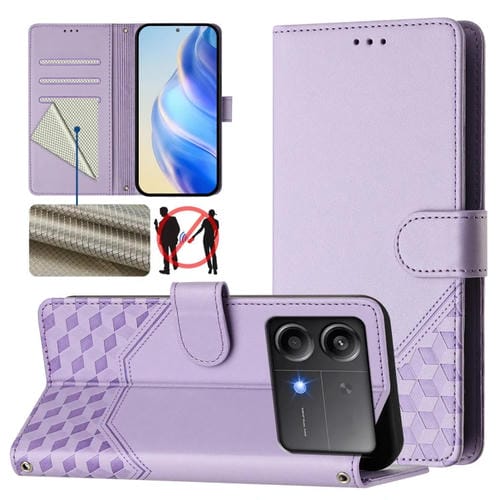 Funda de Cuero Rfid con Relieve de Panal para Xiaomi Poco X6 Neo 5G (Morado Claro)