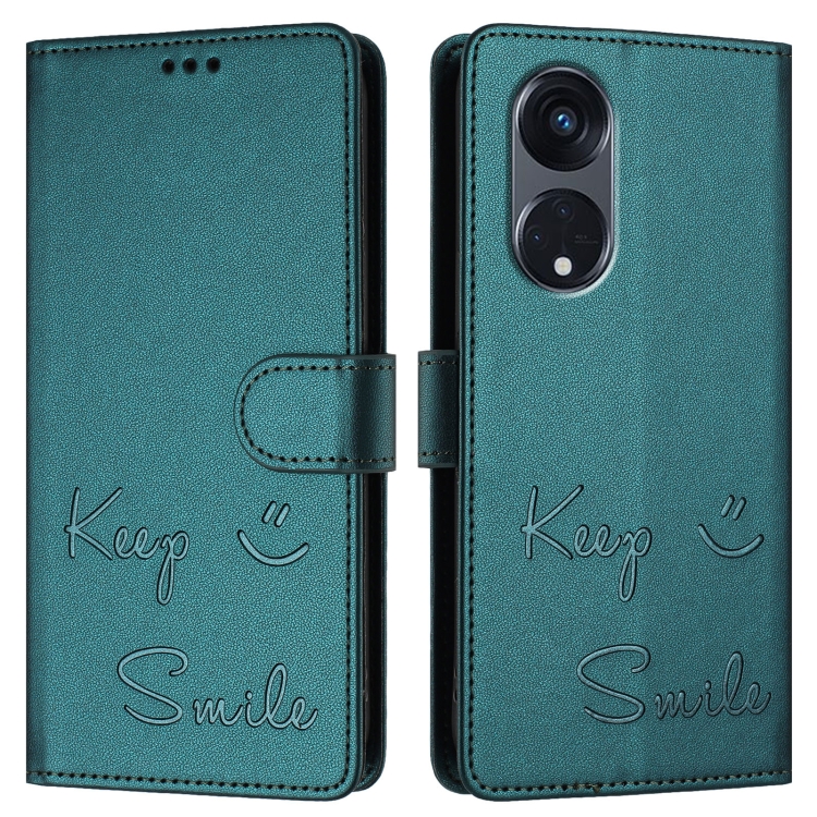 Funda de Cuero Rfid con Relieve de Sonrisa Global para Oppo A1 Pro 5G/Reno8 T 5G (Verde Pavo Real)