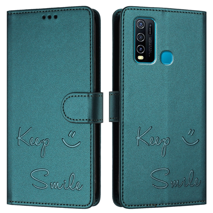 Funda de Cuero Rfid con Relieve de Sonrisa Global para Vivo Y30 4G (Verde Pavo Real)