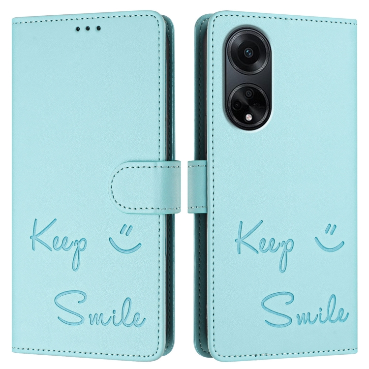 Funda de Cuero Rfid con Relieve de Sonrisa India para Oppo A98 5G/F23 5G (Verde Menta)
