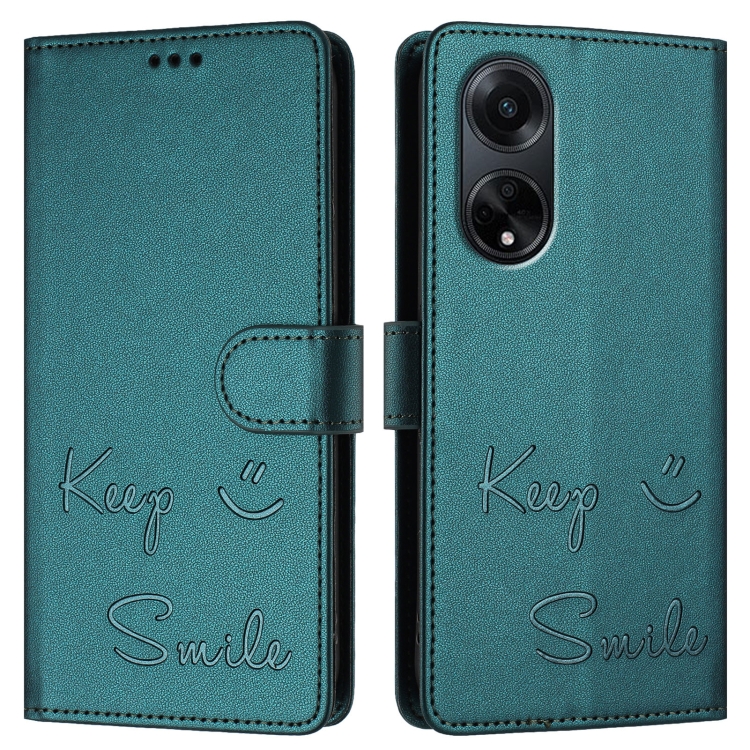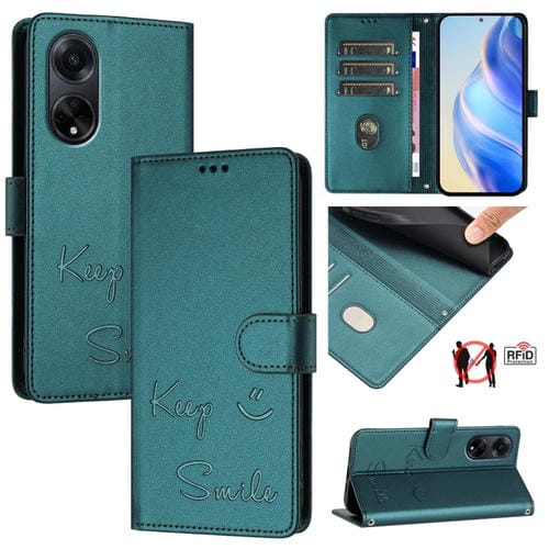 Funda de Cuero Rfid con Relieve de Sonrisa India para Oppo A98 5G/F23 5G (Verde Pavo Real)