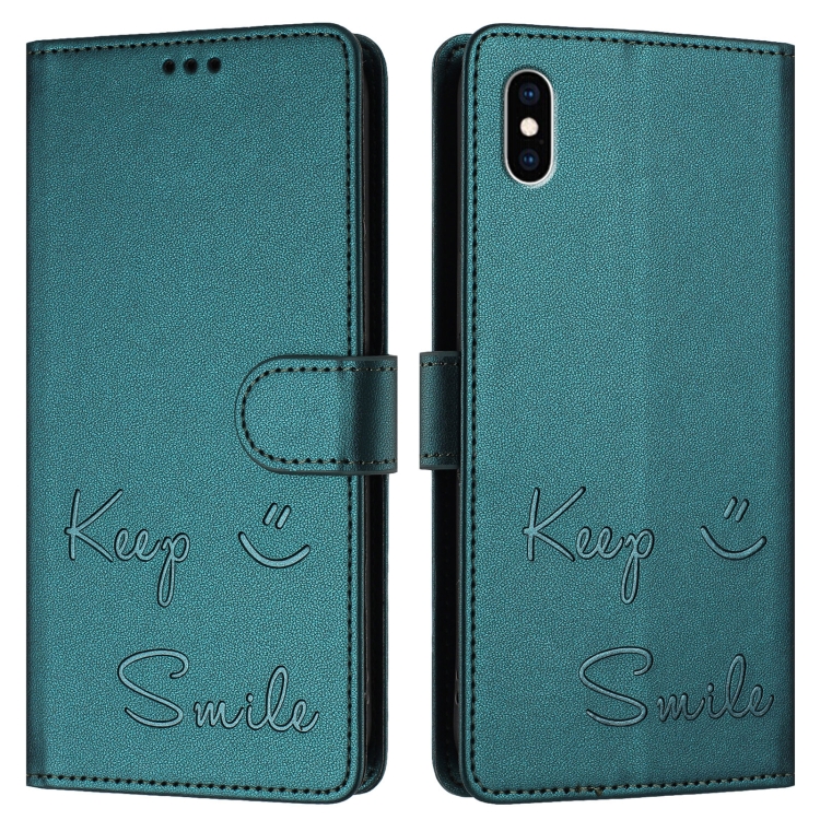 Funda de Cuero Rfid con Relieve de Sonrisa para iPhone Xs Max (Verde Pavo Real)