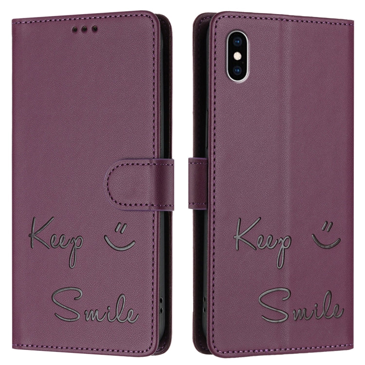 Funda de Cuero Rfid para iPhone Xs Max con Relieve de Sonrisa (Violeta)