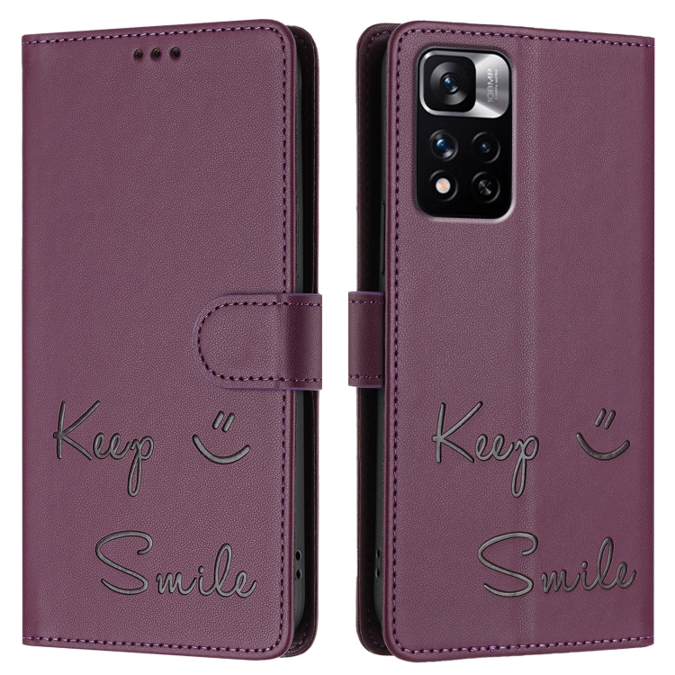 Funda de Cuero Rfid con Relieve de Sonrisa para Redmi Note 11 Pro+ 5G Eu (Violeta)