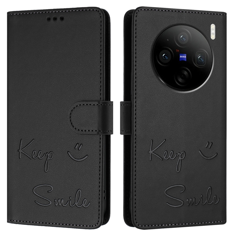 Funda de Cuero Rfid con Relieve de Sonrisa para Vivo X100 Pro 5G (Negra)