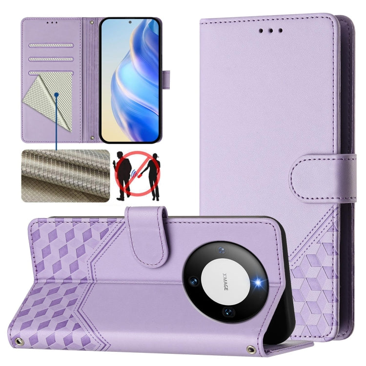 Funda de Cuero Rfid con Relieve en Panal para Huawei Mate 60 (Morado Claro)