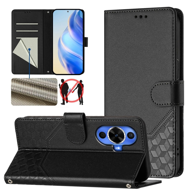 Funda de Cuero Rfid con Relieve en Panal para Huawei Nova 12S 4G (Negra)