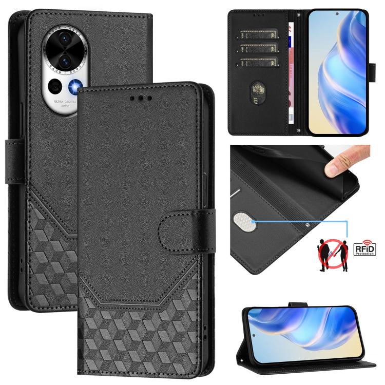 Funda de Cuero Rfid con Relieve en Panal para Huawei Nova 13/Nova 12 (Negra)