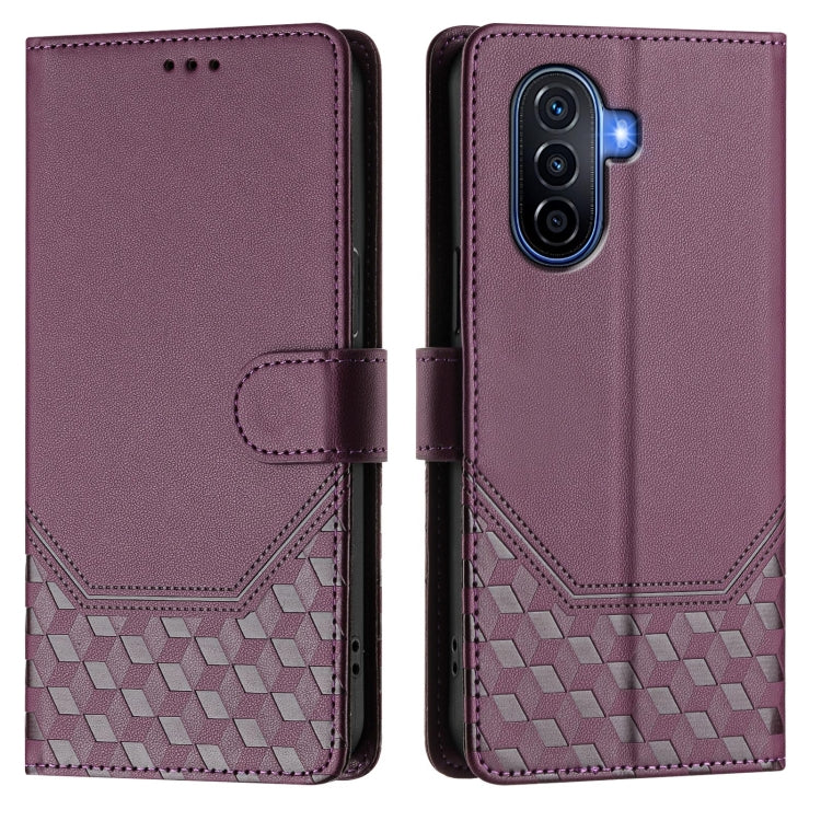 Funda de Cuero Rfid con Relieve en Panal para Huawei Nova Y70 Plus (Violeta)