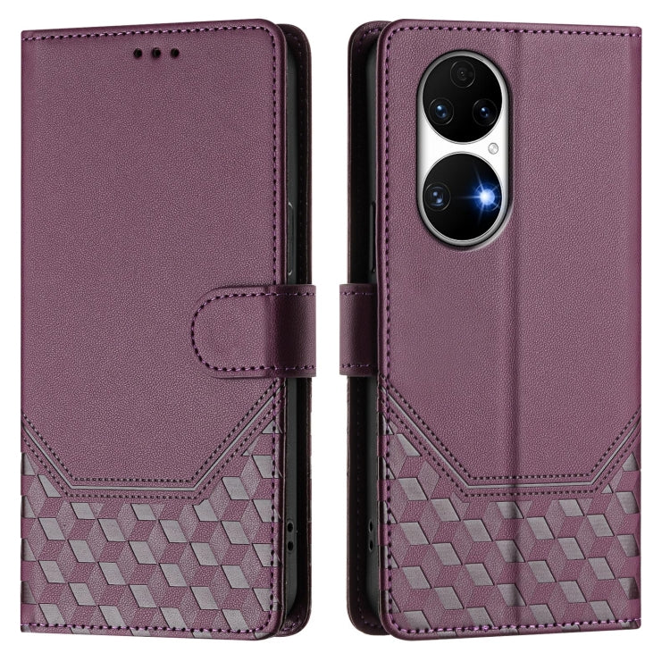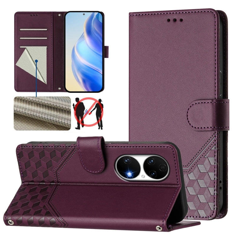 Funda de Cuero Rfid con Relieve en Panal para Huawei P50 (Violeta)