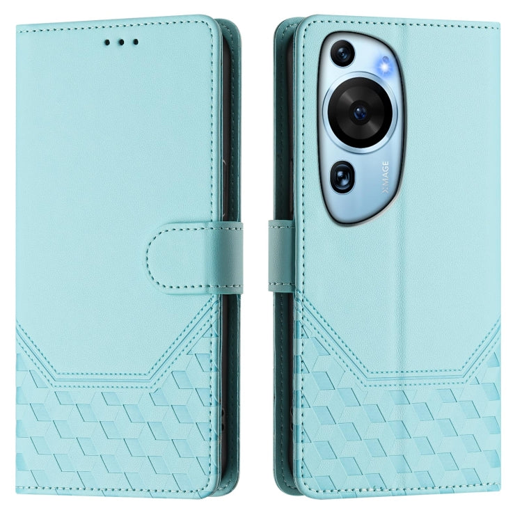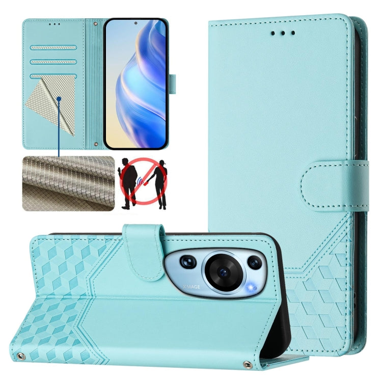 Funda de Cuero Rfid con Relieve en Panal para Huawei P60 (Verde Menta)