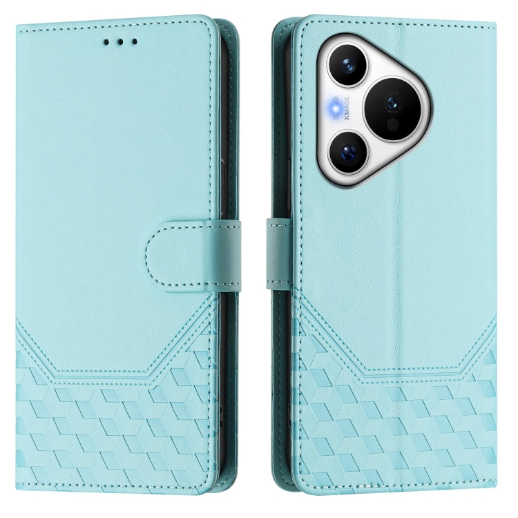 Funda de Cuero Rfid con Relieve en Panal para Huawei Pura 70 (Verde Menta)