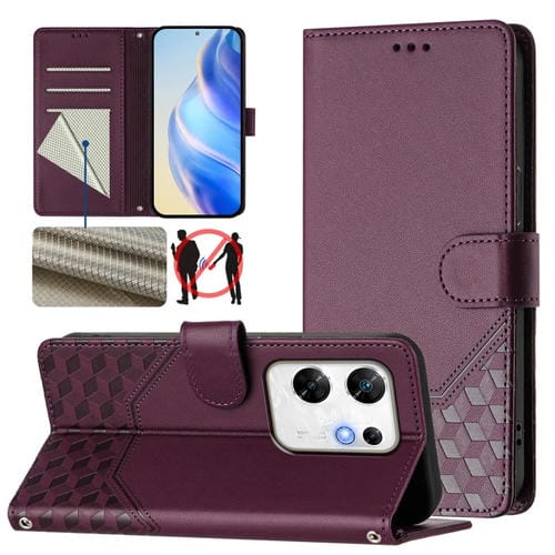 Funda de Cuero Rfid con Relieve en Panal para Infinix Zero 30 4G (Violeta)
