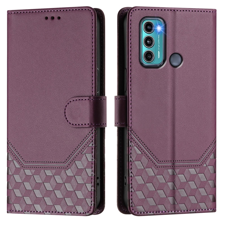Funda de Cuero Rfid con Relieve en Panal para Motorola Moto G60/G40 Fusion (Violeta)