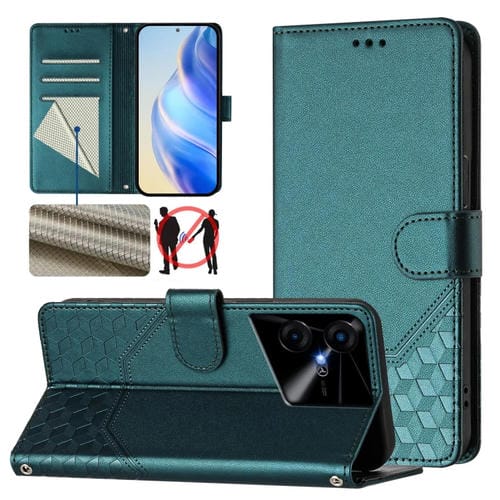 Funda de Cuero Rfid con Relieve en Panal para Tecno Pova Neo 3 (Verde Pavo Real)